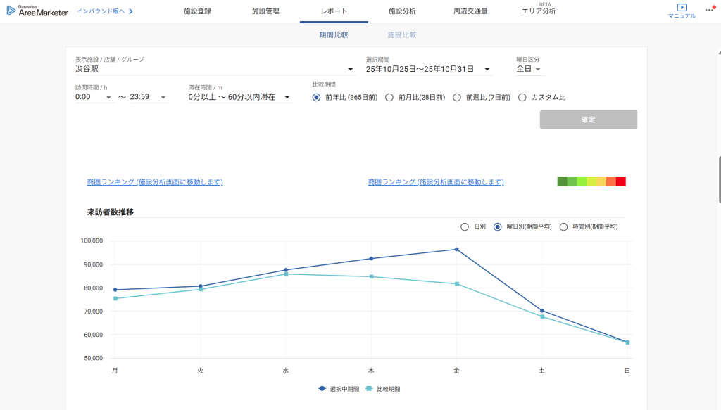来訪属性・時間帯・商圏変動をリアルタイムで把握できます。
