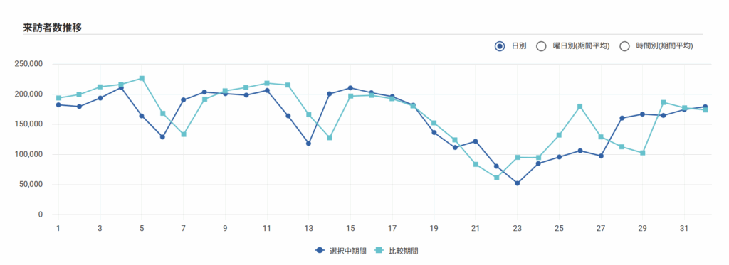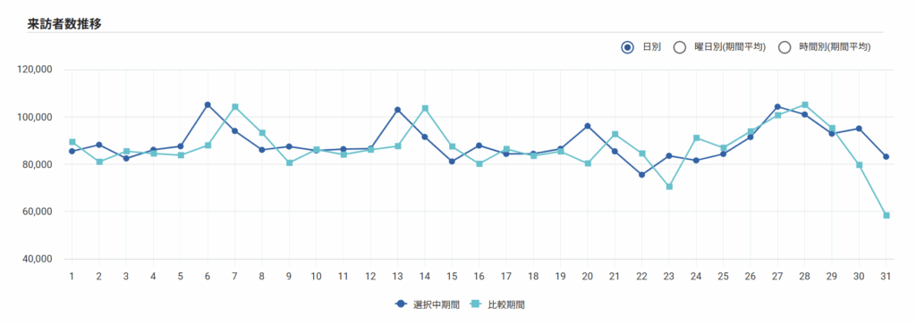 一方、梅田は年末に山を作った後、年始は戻り客+初売り来訪の“活動ターゲットの入れ替えピーク”。
