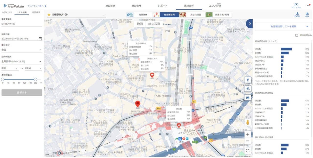 ・他の店舗との併訪問比率を確認できる「他店舗訪問分析」